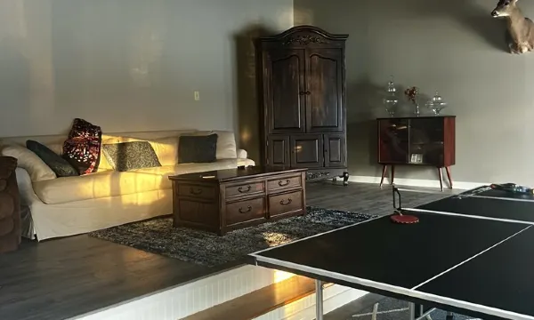 Everything was fantastic from the time we got there. It was actually way more than we even expected. Having three levels was definitely a pleasant surprise. My sons thoroughly enjoyed the game room with ping pong and arcade games. The set up of the homeless so cozy and peaceful. The view of the lake is gorgeous.