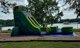 This was an excellent house for our yearly lake trip! The layout is great for families with kids and the property has a lot of fun activities! Our kids LOVED the slide rental and the paddle boards!