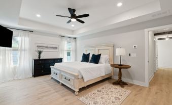 Enjoy the fully equipped kitchen, WiFi, and a dedicated workspace. Two king master bedrooms, washer/dryer, and thoughtful touches throughout make this home as comfortable as it is functional.