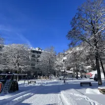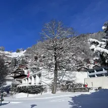 Это хороший 4-звездочный отель, персонал дружелюбный и услужливый. Номера старые, но очень теплые. Еда хороша. Автобус № 303 доставит вас в Титлис.