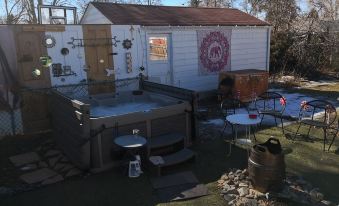 City permit # USE2023-005About pets:No pets allowed, service animals permitted.About checkOut:Check out before 11:00 AM.About children:Adults only.About customRules:Must cover hottub after use or $50 fee and must rinse off any oils or lotions before going in hottub and rinse suits of chlorine or detergents please.Front and back door have cameras when entering and exiting and of parking in front.,Naked hottub use is much preferred as it is UV filtered with very little chlorine or shock used. Bathing suits have soaps in them causing coudyness..About checkIn:Check in after 3:00 PM.About smoking:Smoking allowed: in designated areas.Tobacco-OUTSIDE ONLY!! Cannabis-INSIDE OK.About minBookingAge:Minimum age to rent: 21.About events:Events allowed: family gatherings, birthday parties, weddings.Maximum event attendees: 20,Only with previous notice and extra fees apply150+.
