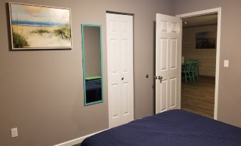 The Beach cottage with its white wash walls and bright colored decor will make you feell like you are at the beach all day.