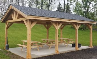 Newly constructed covered pavilion with 3 picnic tables - shared with neighboring cabin