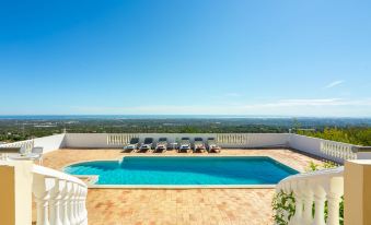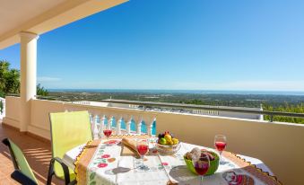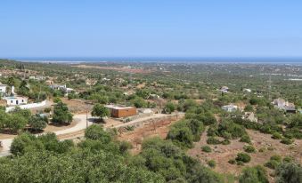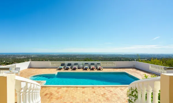 Beautiful house "Paraíso", detached, built in 2005, surrounded by fields. In the hamlet Alcaria Cova 4 km from the centre of Estói, 10 km from the centre of São Brás de Alportel, 10.4 km from the centre of Olhão, on a slope, 12 km from the sea, in the countryside. Private: natural state property 4 ha with wildlife garden and trees, swimming pool (8 x 4 m, depth 140 - 245 cm, seasonal availability: 01.Jan. - 31.Dec.). Outdoor shower, pool maintenance by the owner/gardener. 300 m long steep, narrow motor access. Parking (for 2 cars) on the premises. Shop 1.3 km, supermarket 4.4 km, bus stop "Vale Grande (Cerro), Estoi" 1.4 km, railway station "Faro" 15.9 km, sandy beach "Armona/Culatra v. Olhão per Boot" 11.5 km, indoor swimming pool 11.6 km. Golf course (18 hole) 17.5 km. "Paraíso", 4-room house 120 m2. Bright, beautiful and tasteful furnishings: living/dining room with open-hearth fireplace, satellite TV and DVD. Exit to the terrace. 1 room with 1 french bed (160 cm, length 200 cm), shower/WC, electric heating and air conditioning. 2 rooms, each room with 2 beds (90 cm, length 195 cm), electric heating and air conditioning. Kitchen (oven, dishwasher, 4 ceramic glass hob hotplates, toaster, kettle, microwave, freezer, electric coffee machine) with dining table. Exit to the terrace. Bath/WC. Heating (extra), air-conditioning (extra). Terrace. Terrace furniture, barbecue, deck chairs (6), box-room. Panoramic view of the sea. Facilities: washing machine, safe, iron, children's high chair, baby cot, hair dryer. Internet (WiFi, free). Please note: non-smokers only. Smoke alarm, fire extinguisher. 25822/AL
