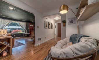 This cozy 2 bedroom bungalow is charming and sophisticated. Two queen beds, cable TV and high speed internet. Decorated with natural elements and earth tones this space is a welcoming and relaxing oasis. Includes sleeper sofa or queen air mattress for additional guests.