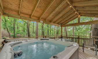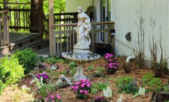 Cozy split level 2 bedroom cottage, perfectly located near Trolly stop, with private hot tub, charcoal grill, washer and dryer, and access to pool. Restaurants are located within minutes. Comes with breakfast including homemade quiche, muffins, banana bread, hot and cold cereals, waffles, biscuits and gravy, scrambled eggs, etc. Great location in town tucked away in a private wooded setting. Set on the deck and watch deer walk within 20 feet of you. Come see for yourself!!About pets:No pets allowed.About checkOut:Check out before 11:00 AM.About children:Adults only.About checkIn:Check in after 4:00 PM.About smoking:Smoking is not permitted.About events:No events allowed.