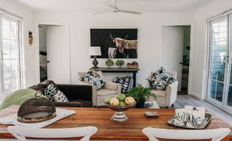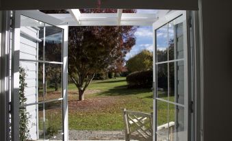 Enjoy a self-contained space with a cozy gas log fire, air conditioning, and a beautifully appointed interior. Light and airy with French doors opening out to mature gardens.