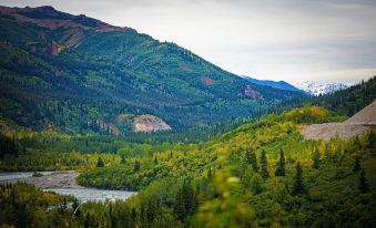 Relax at this serene Alaskan glamping spot. Cozy up in your own charming log cabin with hot and cold water at the sink and a quaint teepee outhouse nearby. Enjoy the peaceful surroundings by Goldstream Creek and a pond. A shower and laundry house are just 1.8 miles away at Goldstream General Store 4 min drive. Winter bookings require 4x4 and winter tires. With over 75 glowing 5-star reviews, this listing is ready for your perfect getaway!