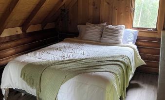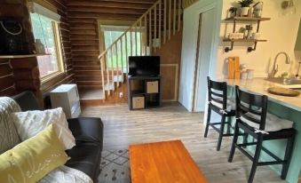 Just because you're in a cabin doesn't mean you have to live uncomfortably. We have running water and WiFi along with a Smart TV in the living room. There's a fully stocked kitchen for cooking your favorite meals, along with a full bathroom (stall shower) huge fluffy towels and linens designed to make you feel like you're living in luxury in the woods. Unfortunately there's no washer or dryer however there is a laundry facility right across the road.