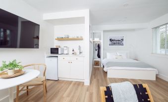 Почувствуйте себя как дома в одном из 14. В номерах имеются мини-кухни. Чтобы вам не пришлось скучать, в номерах установлены телевизоры Smart TV с диагональю 55 дюйм., на которых можно смотреть цифровое телевидение, а бесплатный беспроводной доступ к интернету позволяет всегда оставаться на связи. Предоставляются следующие удобства и услуги: микроволновые печи и кофеварки/чайники. Уборка номеров осуществляется по требованию.