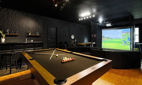 - Speakeasy Bar with Golf Simulator, Pool Table, Shuffleboard, and Darts
