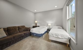 30-Day rentals allowed at this property! This listing is for a main floor bedroom in a 5,400 sq. ft. home w/ neighborhood amenities. With room for 2, guests have a full bathroom with walk-in shower and soaking tub. You will be sharing the common areas of the home (kitchen, living room, dining room, patio, driveway) as well as home amenities such as Wi-Fi. Conveniently located in Fishers, IN just 2 miles from Geist Marina and 4 miles from Ruoff Music Center and Hamilton Town Center Mall. Have a pet? It's $300 per pet per stay to bring them along.