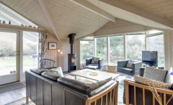 Single-family house, built in 2000. 1.7 km from the sea. Private: natural state property 2'950 m2. In the house: washing machine, tumble dryer. Parking at the house. Grocery 500 m. "Klint" - 1.7km from the sea", 3-room house 82 m2. Object suitable for 6 adults + 1 child. Living room with TV, video, radio, CD-player and DVD. 1 room with 1 double bed. 1 room with 1 double bed. 1 room with 2 beds. Kitchen (4 hot plates, oven, dishwasher, microwave, freezer). 2 showers/WC. Facilities: children's high chair, baby cot. Internet (WiFi). Please note: non-smokers only. 563-872