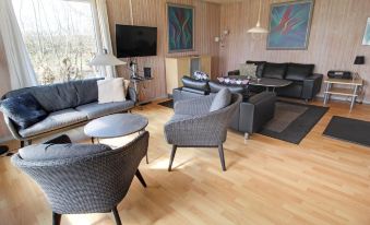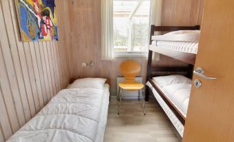 Single-family house, built in 1984. 1.2 km from the sea. Private: natural state property 1'900 m2. Children's playground (swing). In the house: sauna, washing machine. Grocery 1.2 km. "Svanhild" - 1.2km from the sea", 3-room house 70 m2. Object suitable for 6 adults + 1 child. Living room with TV, radio, CD-player and DVD. 1 room with 1 double bed. 1 room with 2 beds. 1 room with 1 bed and 1 x 2 bunk beds. Kitchen (4 hot plates, oven, dishwasher, freezer). Shower/WC. Terrace 30 m2, roofed. Facilities: children's high chair, baby cot. Internet (WiFi). Please note: non-smokers only. Maximum 1 pet/ dog allowed. 563-42133