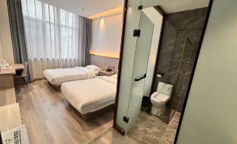 房間非常大,三個大床,還有個麻將機,衞生也很好,衞生間也比較大,乾濕分離,門口飯店超市都很方便