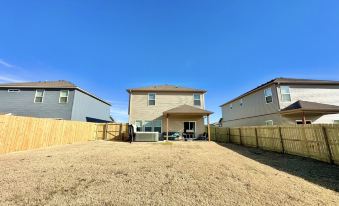This is a two story, 3 bedroom, 2.5 bath brand new home. The kitchen, dining, and living room are open concept making it perfect for entertaining. Your kitchen is fully stocked for all of your cooking needs. The dining table seats 6 comfortably and there are also 3 barstools at the kitchen island. Downstairs you also have a half bathroom conveniently located in the hallway. The large screen smart TV is ready for streaming movies or the big game in the living room. Additional smart TVs are in each of the bedrooms. The dining area leads out to a covered back patio with outdoor seating, charcoal grill and of course the hot tub. The backyard is large and flat making it perfect for tailgate games or just enjoying the lawn and view of large mature trees behind you.