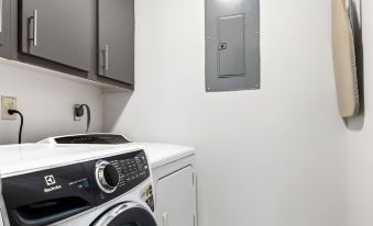 When you walk into home you will find our open concept living room, kitchen, and dining space that creates the perfect space for comfortable, memorable gatherings. The living room features a large Smart TV with all your favorite streaming channels, along with plush seating, large windows, a gas fireplace, a desk space, and a cocktail station! The kitchen is fully stocked with everything you’ll need to make a meal or just a good cup of coffee.