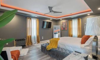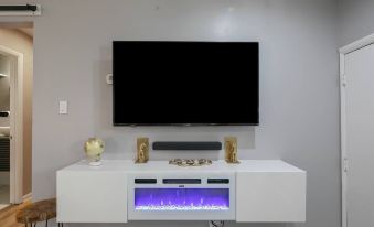 "Ellis Hideaway: A luxurious 2-bed, 1.5-bath retreat with a queen and twin bed, cozy living space, floating fireplace, WiFi, Bluetooth, coffee maker, snacks, and elegant decor—ideal for a peaceful getaway."About pets:Pets allowed: less than 20 lbs per pet (limit one pet total).About children:Children allowed: ages 0-17.About smoking:Smoking is not permitted.About events:No events allowed.
