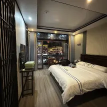 Комната просторная и удобная, с умным туалетом и красивыми шторами. Также есть балкон с набором табуретов и инструментов для питья чая, а также подвесной стул, на котором можно посидеть. В нем есть несколько вешалок. достаточно для двух человек. Вечером каждый день проводится уборка. Было бы лучше, если бы горячая вода в душевой была более стабильной (возможно, я не очень умею ею пользоваться). достаточно, я не очень хорошо умею его регулировать, и мне кажется, что он слишком горячий. С балкона открывается вид на ночной вид и горный пейзаж напротив, с Вечной пагодой сбоку. Отель типа «постель и завтрак» расположен в среднем и нижнем течении, недалеко от Хунцяо. Чтобы сойти с высокоскоростной железной дороги и сесть на автобус № 1 до площади Цифэн, а затем пройти пешком от площади Цифэн в течение 10 минут. Я все равно забронирую этот отель в следующий раз, когда приеду в древний город Фэнхуан.