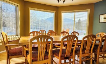 Looking for the perfect getaway for your large family or group? Our spacious 7-bedroom, 4-bathroom condo is the ideal choice for your Fernie adventure. Step outside to find a beautiful walking/biking trail right at your doorstep. Immerse yourself in breathtaking 360° mountain views, including the ski hill, and enjoy the tranquil river flowing right beside the property.
