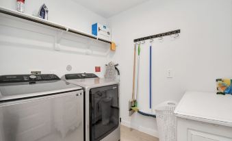 Kitchen Amenities: Equipped with a fridge, stove, dishwasher, coffee maker, microwave, cooking basics, toaster, dishware/flatware, and complimentary trash bags/paper towels.