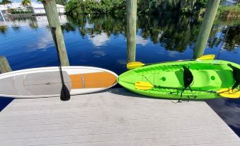 Bay of Grace is a totally remodeled high-end home directly on the Caloosahatchee River. It is in a protected bay away from the river waves and boat traffic with extensive docks for boats and other watercraft. It has a pool for every age: a wading pool for the little ones, a hot tub for the adults, and a large infinity pool for everyone. Bay of Grace is a three-bedroom, two-bath home with an open concept living area, kitchen, and dining room. It sleeps 9 with the master suite being large private room with its own sliding glass door to the patio and pool. There is a king bed, double leather futon, and 2 single beds (day bed + trundle). The Master Bath has his and her closets, vanity and large shower with two shower heads. Bedrooms 2 and 3 have queen beds and a shared bathroom. Take in a stunning sunset, cast your fishing rods (2 provided), paddle the bay on a kayak or paddle board (provided) or soak away your cares in the heated pool and hot tub. A high-end place on the river to spend time whether it is a vacation, long term stay, or just a quick weekend away. It is a experience you and your family will never forget. NOTE: If you need a same day check in - ask us - VRBO will say it is not possible, but if the house is ready we can accommodate you.About pets:Pets allowed: dogs and cats less than 50 lbs per pet (limit 2 pets total).No dangerous breeds. Backyard is fenced..About checkOut:Check out before 10:00 AM.About children:Children allowed: ages 0-17.About checkIn:Check in after 4:00 PM.About smoking:Smoking is not permitted.About minBookingAge:Minimum age to rent: 25.About events:No events allowed.No parties or events allowed. This is quiet place..