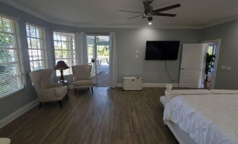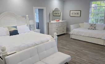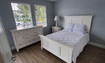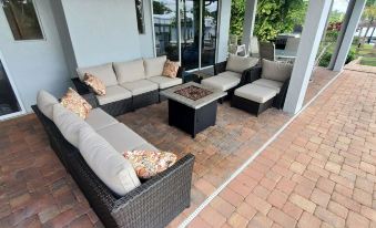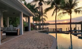 We stayed at this beautiful Fort Myers Shores property during this past weekend. Our son and his bride were married at the Grace Island Resort property which is just across the small cove. This lovely home with an amazing pool complex and river access is located at the end of the Resort's long driveway which made it easy to come and go for the weekend's family events. The house has a huge primary bedroom and bath and two queen bedrooms which were very comfortable. The Great Room provides plenty of space and combines the kitchen, breakfast nook, and dining room with the living room's large TV and spacious L-shaped sofa. The great weather allowed us to enjoy the awesome pool, hot tub, and kiddie pool on the back patio as the sun set over the adjoining river. We highly recommend this Bay of Grace property and Mike and Karen were very responsive to every question or request at both properties throughout the weekend.