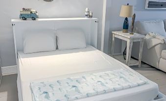 My husband and I loved our stay at Andrea's condo! Its furnishings and nautical decor were beautifully appointed. The king size bed was super-comfortable as was the Murphy bed where our son slept during a short visit with us. The condo was also immaculate and equipped with everything one could possibly need. We enjoyed sitting on the lovely patio overlooking the pond out front as well as watching TV on the sectional under the plush throws left for our use.