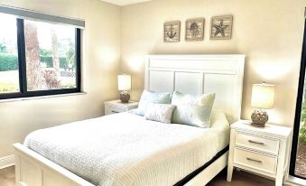 Relax in this spacious and serene ground floor beach condo. Newly renovated with a peaceful patio overlooking the pond. The condo has a master bedroom with a king bed and two guest bedrooms with a king and a queen beds.