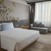 После заселения обслуживание на ресепшене было отличным. Номер чистый и уютный, подушки удобные. У отеля удобное расположение – прямо через дорогу находятся торговый центр Huan Yu Cheng и станция метро. Остались очень довольны. 👍👍