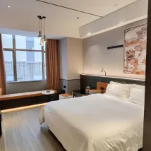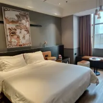 Комната очень хорошая, чистая и уникальная, с полной инфраструктурой и оборудованием. Телевизор можно транслировать, а внизу есть торговая улица для удовлетворения основных жизненных потребностей. Вокруг много еды, включая желанный университетский городок. Улица с закусками. Хорошо, каждая деталь аккуратная и чистая. Сервис заслуживает высокой оценки. Во-первых, на стойке регистрации мне бесплатно помогли повысить категорию номера. Они спросили меня, нужны ли мне тапочки и зубные щетки для детей. Было очень приятно. Было поздно вечером, чтобы пойти развлечься. Когда я вернулся в отель, на стойке регистрации кто-то дежурил. что заставило меня чувствовать себя очень безопасно и комфортно.