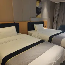 Ответ от объекта размещения: 我們由衷為 1.5 米雙床能讓您一家人睡得舒適感到開心,也很榮幸乾淨的房間環境、機器人上門送早餐的服務,以及延遲至 14 點退房的貼心安排,能為您的入住增添便利與舒心 —— 這些細節正是我們努力為客人打造温馨體驗的方向,您的認可讓我們特別有成就感。同時也非常感謝您坦誠提及附近商場較少的情況,我們已留意到這一反饋,後續會考慮為入住客人整理周邊更豐富的生活配套指引(如超市、特色小店等),希望能更好地彌補這一不足。未來我們會繼續打磨服務細節,期待下次還能為您和家人提供更優質的入住體驗,祝您生活愉快!