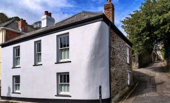 Fowey: Cottage. For shared use: property (fenced). Private: garden. Garden furniture. Shingle beach 500 m. "Potters Cottage", 4-room house 140 m2. Object suitable for 6 adults. Living room with open-hearth fireplace. 1 room with 1 french bed. 1 room with 2 beds. 1 room with 2 beds. Kitchen (oven, dishwasher, toaster, kettle, microwave, freezer, electric coffee machine). Bath/WC, shower/WC. Barbecue. Facilities: washing machine, iron. Internet (WiFi, free). Please note: non-smokers only.