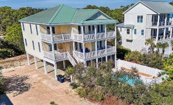 The perfect beach retreat! Located in a St George Island Gated Community this home has enough space for a large family or for multiple families but also welcoming for only a few guests. The Sand Bar sits directly across from the beach and offers amazing unobstructed Gulf views. It is tastefully decorated and offers granite countertops, new appliances, and upscale furnishings. Its recently remodeled spacious outdoor kitchen offers a wonderful dining area, large gas grill, mini fridge and counters for food prep. The rest of the outdoor area features a hot tub and TV for your relaxing enjoyment. Enjoy the private pool and all its outdoor amenities including an enclosed outdoor shower and fish cleaning area. Bike and walking paths are easily accessed for you to enjoy the beach and all the community has to offer. The Sand Bar is truly a luxurious beach vacation getaway that is just waiting for you to sit bac, relax and enjoy! Take advantage of the community amenities such as the pickleball court, tennis court, fitness center or one of the two community pools.