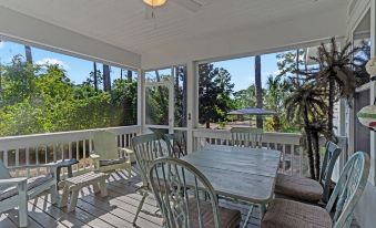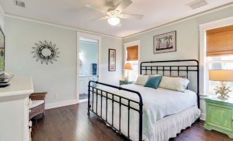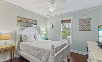 For your peace of mind, exterior security cameras monitor the front porch, yard, and driveway, with smart locks on the front and rear doors programmed with a unique guest code for secure, contactless check-in. Parking is limited to 4 cars or trucks in the driveway, as noted in our house rules. Sunrise Seaclusion embodies the timeless allure of old Florida. Just 6 minutes away, explore St.