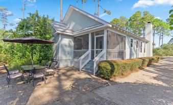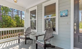 The fully stocked kitchen is a chef’s delight, featuring stainless steel appliances, granite countertops, and everything needed for coastal feasts, pots, pans, utensils, coffee maker, tea kettle, crock pot, griddle, and blender. Savor fresh-caught fish or sizzling steaks from the charcoal grill on the stone patio, complete with a fire pit and seating for 8 under the stars. After beach adventures, rinse off in the refreshing outdoor shower or relax on the back screened coastal porch with seating for 8, enveloped by Gulf breezes and pine-scented serenity.