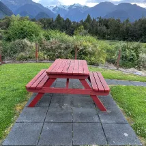 Fantastic holiday park, about a 2-minute drive from the centre of the town. Our cabin was clean, spacious and well-equipped. We bought meat at the local supermarket and used the barbecue facilities on site to cook it. There is also a fully operational communal kitchen which can be used for cooking. The service was outstanding and we had our helicopter ride to see the glaciers booked from reception. All and all, a wonderful experience.