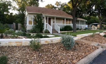 Enjoy a limestone courtyard where you can sip on wine in front of a outdoor fireplace or soak away the big city blues in the hot tub. Newly renovated, no expense spared, with granite counter tops, stone and wood floors though out. Beautifully designed spaces prepared to meet your every need. Furnished by two of our favorite stores here in Fredericksburg. We are 1/2 a block from downtown Marketplatz, Main Street shops, and restaurants, in the middle of the historic district.