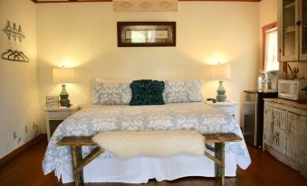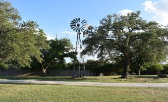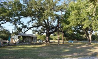 The Garden Cottage is situated beneath a large oak with lean-to porch as the perfect entrance into this quaint little cabin. This special little guesthouse is one room with high-pitched ceilings and a roomy bath. The focal point is the king-size bed. The spacious bath features a claw foot tub with shower. Enjoy your morning or evening on the porch swing perfect for enjoying a beautiful Texas evening.