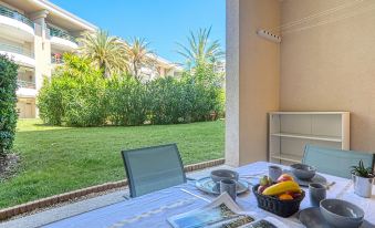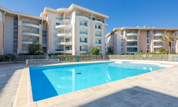 Port Fréjus: Residence "Le Cesarée". 200 m from the sea, 300 m from the beach. For shared use: swimming pool angular (10 x 20 m, depth 110 - 180 cm, seasonal availability: 15.May. - 15.Oct.) with internal staircase. Public parking on the road. Shop 500 m, supermarket 1 km, restaurant 500 m, bus stop "Fréjus Port OUEST" 60 m, railway station "saint-Raphaël Valescure" 2 km, sandy beach 500 m, diving center 250 m. Sports harbour 50 m, golf course (18 hole) 7 km. Nearby attractions: Base Nature 500 m, Cannes 40 km, Saint-Tropez 40 km, Nice 70 km, Gorges du verdon 90 km. Well-known lakes can easily be reached: Sainte-Croix 90 km. Hiking paths: Estérel 8 km. The keys‘ handover takes place by the agency Interhome in Port Fréjus. 2-room apartment 38 m2, on the ground floor. Renovated in 2023: living room with 1 double sofabed (1 x 140 cm, length 190 cm), flat screen, electric heating, air conditioning and electric shutters. Exit to the terrace. 1 room with 1 french bed (1 x 160 cm, length 200 cm), flat screen. Open kitchen (oven, dishwasher, 4 induction hot plates, toaster, kettle, microwave, freezer, electric coffee machine). Bathroom, sep. WC. Terrace 7 m2. Terrace furniture. View of the garden. Facilities: washing machine, iron, hair dryer. Internet (WiFi, free). Please note: non-smokers only. Maximum 1 pet/ dog allowed. Smoke alarm. Offer by a private individual according to Art. 155, IV of CGI.
