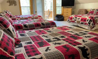 -Spacious bedroom with 2 Queen beds, 2 Full beds, and walk-in closet