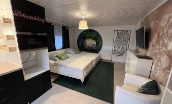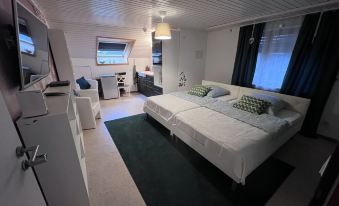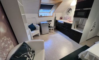 The apartment is very confortable and well setup, split in two different rooms at the first floor of a family house. The house is in a dead-end street, in the surroundings of Friedrichshaffen, very peaceful and green. The access is easy, and recommandations are clear for every day’s life. From the apartment, you can get any public transport for free including local trains, with the « bodenseee echt card », and that is cool. All in all, we had great moments there !