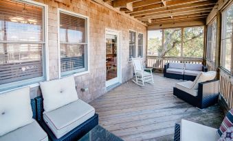 Sound side comfortable & dog friendly home on the water in Hatteras Island. Located in awesome Brigands Bay neighborhood. Perfect for walks or bike riding without the traffic. Enjoy your morning coffee from the screened porch. Bring your boat and tie it up to the private dock. (private open boat ramp). You can also kayak or stand up paddleboard if that’s more your speed enjoying the back sound. Brand new Hot tub on third floor overlooking the water for relaxing. Screened in rear porch with table/chairs off living room. Seat swing on ground floor overlooking the large grass yard. Dog fence located on side of property. Inside a bonus 5th bedroom acts as movie room w/ 70” tv and pull out couches for rain days or extra guests. Super large kitchen with seats at the 8’ island, 2 dishwashers, gas stove and large pantry closet. Home is located minutes from 4-wheel drive & other beaches or stay home and cast a fishing pole right off your private dock. Wi-Fi, new smart tvs, new air-condition units, new furniture, new flooring, all included. A quiet place to relax and enjoy the Outer Banks at its finest! Linens included!About pets:Pets allowed: dogs (limit 2 total).Dogs must be crated when unsupervised $250 pet fee.About checkOut:Check out before 10:00 AM.About children:Children allowed: ages 0-17.About customRules:Any damage to home (pets or otherwise) paid for by renter. $99 Insurance must be taken out during booking through VRBO..There is an additional $250 pet fee covering the cleaners additional fee for having a pet stay with us. No more than 2 pets crated on premises,There are exterior cameras at front doors and driveway. They are not monitored unless there is a problem. please no smoking or using fireplace..About checkIn:Check in after 4:00 PM.About smoking:Smoking is not permitted.About minBookingAge:Minimum age to rent: 25.About events:No events allowed.