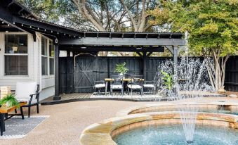 Welcome to your spacious, stylish home-away-from-home! This 3BR, 2BA single-story farmhouse retreat offers elegant finishes, private saltwater pool, FREE heated spa, pool cabana, outdoor dining, firepit, Blackstone grill & chaise loungers. Inside features luxury bedding and spa-like en-suite bath. Kids love the cozy bunk bed & teepee room with books & board games. Centrally located in Frisco near The Star, Toyota Stadium, Legacy West, and PGA Frisco—perfect for families, couples, business, and sports travelers.