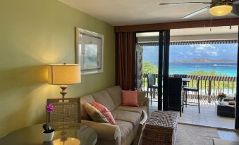 Newly Renovated two-story villa just a few steps away from the crystal clear waters of Sapphire Beach. Sapphire Beach is the nicest beach that is in front of any hotel on the island. The condo is close to beach activities, restaurants, and nightlife in the town of Red Hook, the ferry to St. John, and other Caribbean islands. The condo has a large master bedroom with a king-size bed, a very comfortable queen-sized pull-out sofa, and an en-suite full bathroom. The main living area has a kitchen, sleeper sofa, as well as a full Bathroom with a washing machine. Beautiful oceanfront views from 2 large balconies. Netflix is included on our brand-new Smart TVs (65 inches in the bedroom and 55 inches in the living room). Located in building A, right next to the coffee shop, and beach bar, and on the beach's best (swimmable) part.About pets:No pets allowed.About checkOut:Check out before 11:00 AM.About children:Children allowed: ages 0-17.About checkIn:Check in after 4:00 PM.About smoking:Smoking is not permitted.About minBookingAge:Minimum age to rent: 18.About events:No events allowed.