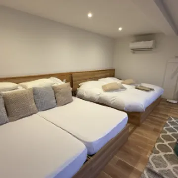 Отель впечатляет. Завтрак и ужин вам придется готовить самостоятельно. Если вы не хотите заморачиваться, экономически выгоднее не включать питание. Отель был открыт в 2024 году и располагает всеми удобствами и отдельной смотровой площадкой с видом на гору Фудзи. Вы можете подождать и отдохнуть в вестибюле отеля, где вам предложат бесплатное вино и напитки, которые весьма уникальны. В номере, где мы остановились, стояли две односпальные кровати, поставленные рядом, и лежал татами, так что в нем без проблем разместились четверо взрослых и ребенок, но в Японии действуют строгие требования к количеству людей, которые могут находиться в номере. Также имеется крытый горячий источник (но, по-моему, это подогреваемая вода или просто кипяток, я не совсем понимаю, потому что там есть нагревательное устройство), а также сауна. На телевизоре можно напрямую смотреть видеоконтент с Netflix, Hulu, YouTube и т. д., и детям это тоже нравится. Подходит для семейного отдыха. В хорошую погоду из комнаты можно увидеть гору Фудзи, но ее загораживают деревья. Этот отель по-прежнему настоятельно рекомендуется! Бутик-отель всего на 16 номеров! Недалеко от отеля находится большой супермаркет, поверните налево и купите еще немного ингредиентов, если захотите приготовить еду. Также здесь много лапшичных и других мест, где можно поесть, что очень удобно.