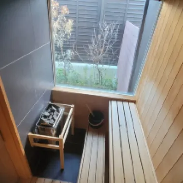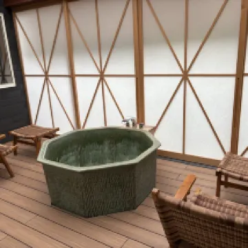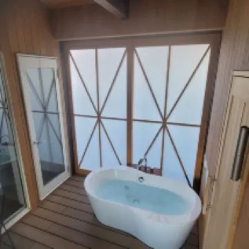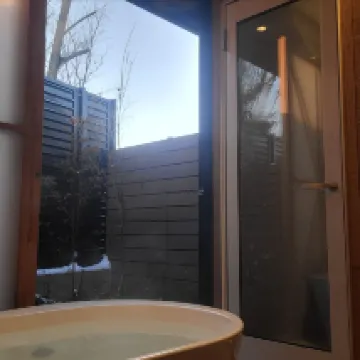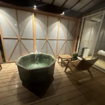 Очень хороший опыт! Я пожалел, что заказал слишком мало. Небольшой дворик в номере был очень элегантным, а собственная ванная комната и сауна были великолепны! Также предлагается молотый вручную кофе и бесплатные напитки. Это настоящий отель-сокровище! Я очень рад, что выбрал это место. Утром перед отъездом я даже видел гору Фудзи из окна своего номера!