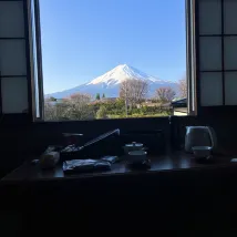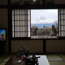 Отель держат пожилые хозяева, и впечатления остались самые приятные. Комната оформлена в традиционном японском стиле, а из окна открывается потрясающий вид на Фудзияму – это просто великолепно!