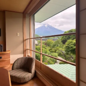 В отеле прекрасная обстановка и внимательное обслуживание. Посадка и высадка возможны на станциях Кавагутико и Фудзи. Приветствие носит торжественный характер. В номере имеется множество туалетных принадлежностей и косметики, а также кофемашина и кофейные капсулы. Качество кофе хорошее. Из номеров отеля открывается вид на гору Фудзи, а также к услугам гостей горячие источники на первом и десятом этажах. Ужин — это очень атмосферная кухня кайсэки. Существует множество вариантов завтрака, и он очень вкусный. Вечером бывают хорошие выступления. Задний сад представляет собой японский сад с дизайнерским оформлением и очень большой. Настоятельно рекомендуется.