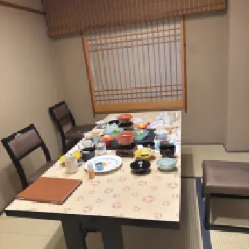 Внутренний двор элегантный, а номер чистый, аккуратный, гигиеничный и просторный, превзошедший ожидания! Впечатления от посещения горячих источников были замечательными. Ужин кайсэки был средним по ингредиентам, но обслуживание было отличным. Завтрак был обильным и разнообразным, с особыми блюдами японской кухни.